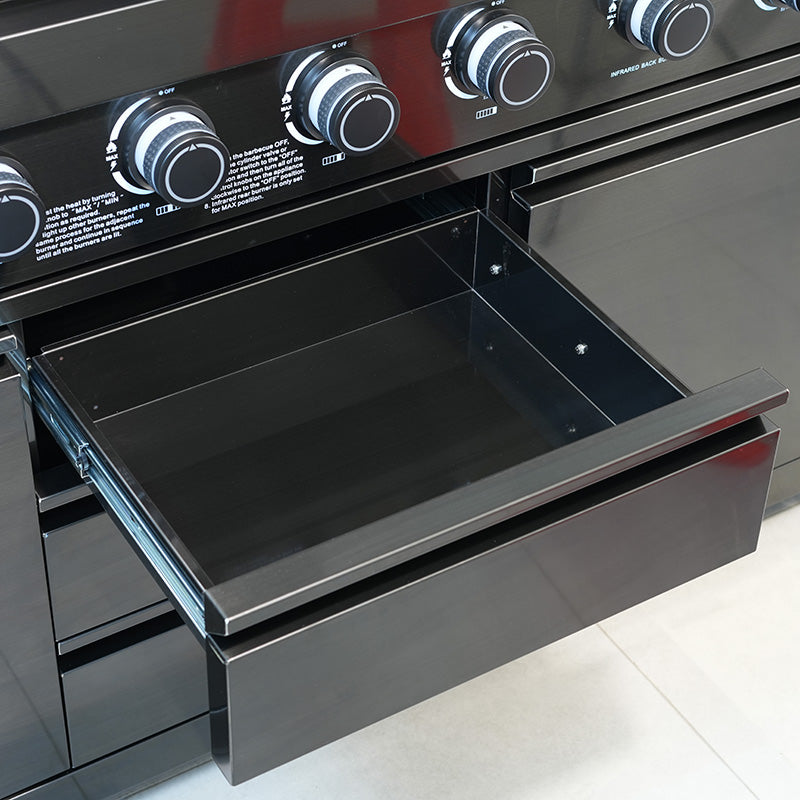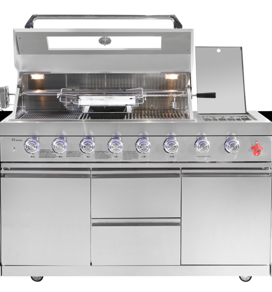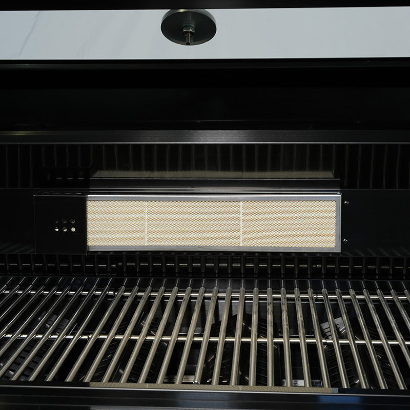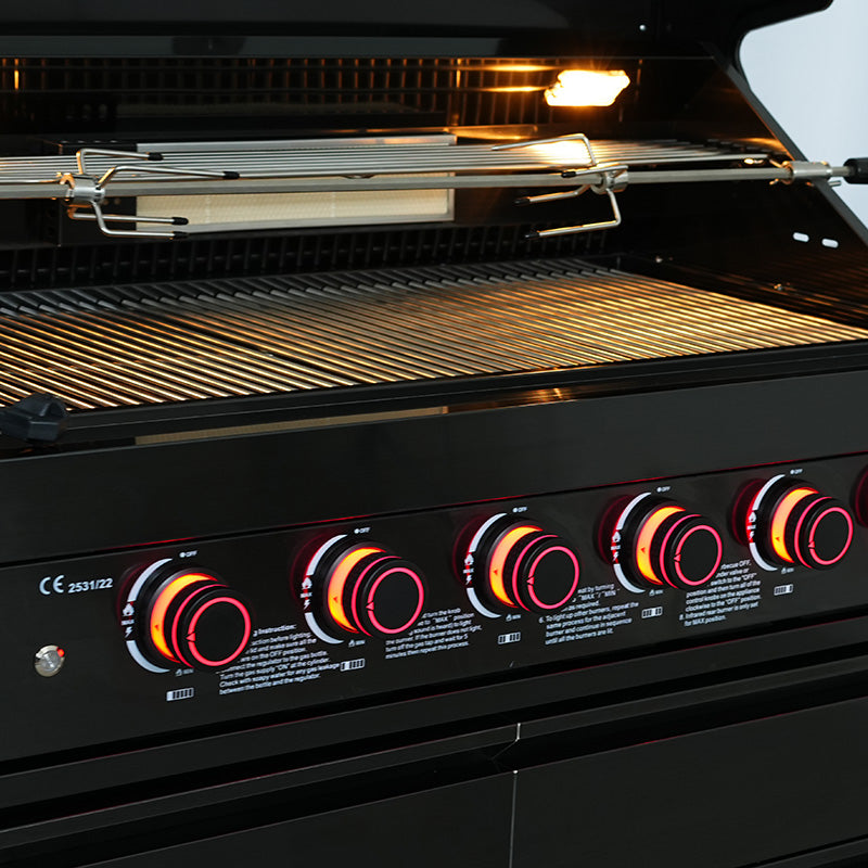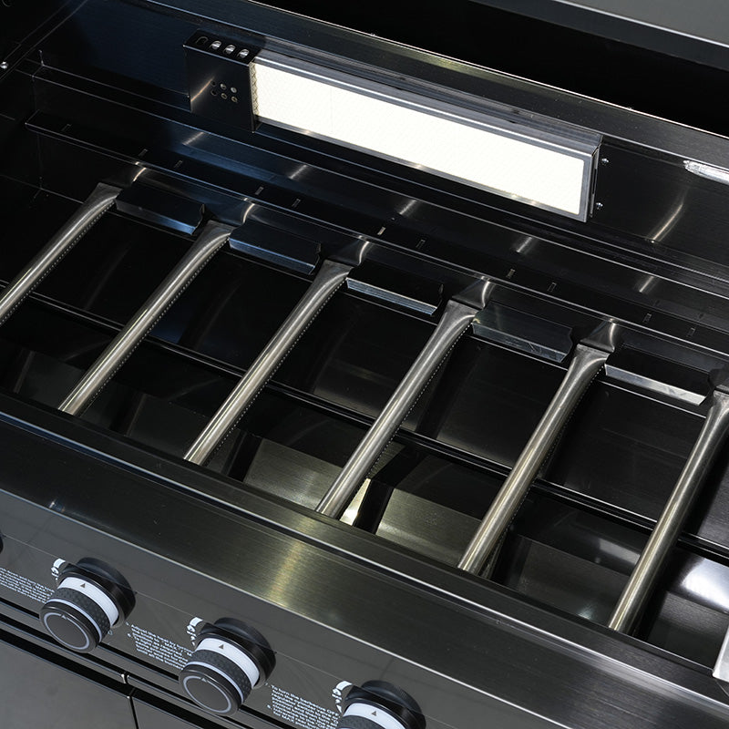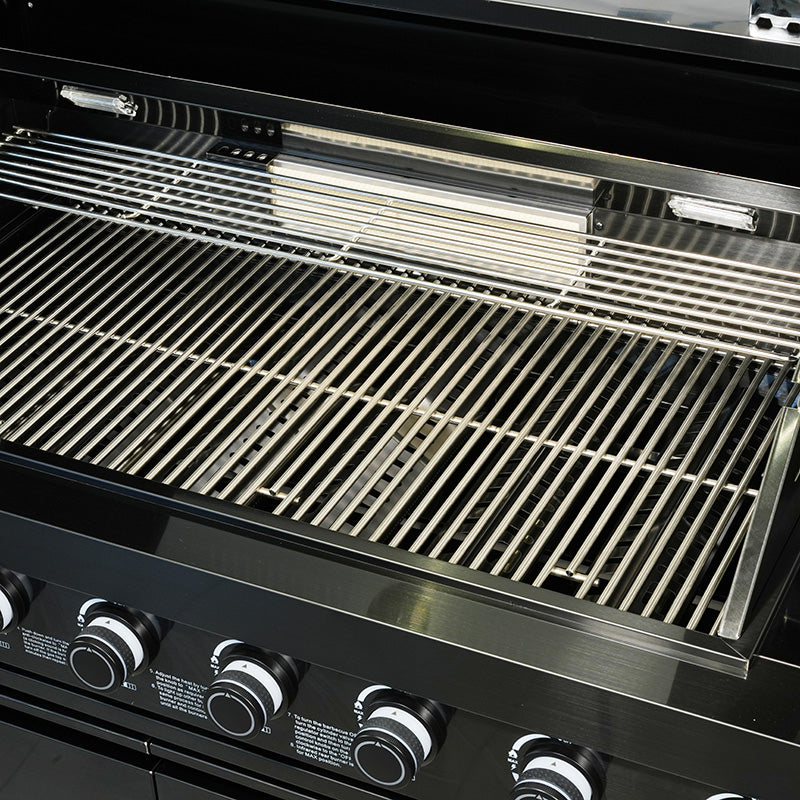 Beginnen Sie mit dem Kochen mit 6 leistungsstarken Brennern und einem zusätzlichen Keramik-Infrarotbrenner auf der Rückseite und einem Seitenbrenner (konventionell oder Infrarot).