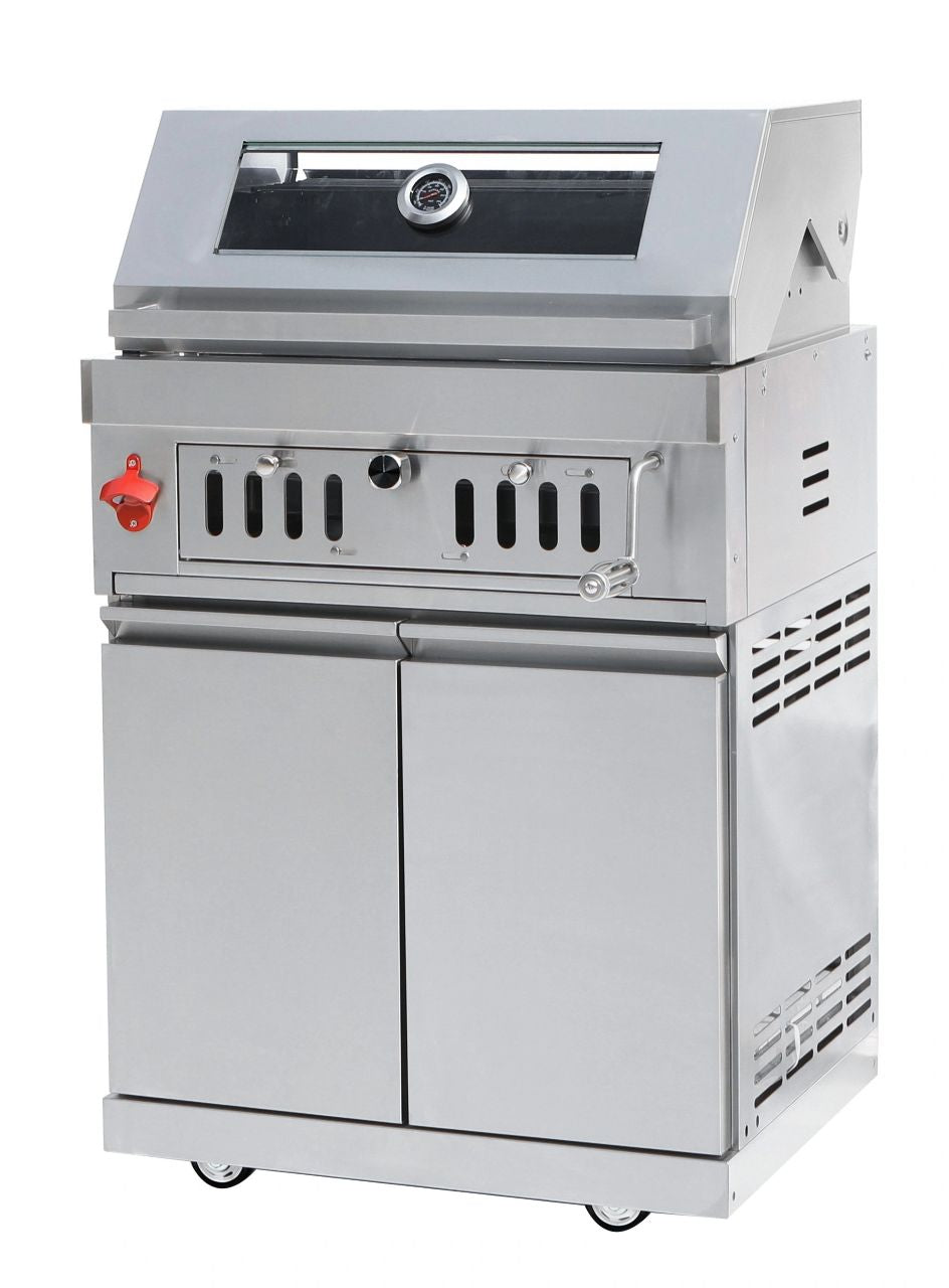 The cabinet hosts a 2 door storage space with one shelf for all your BBQ accessories.