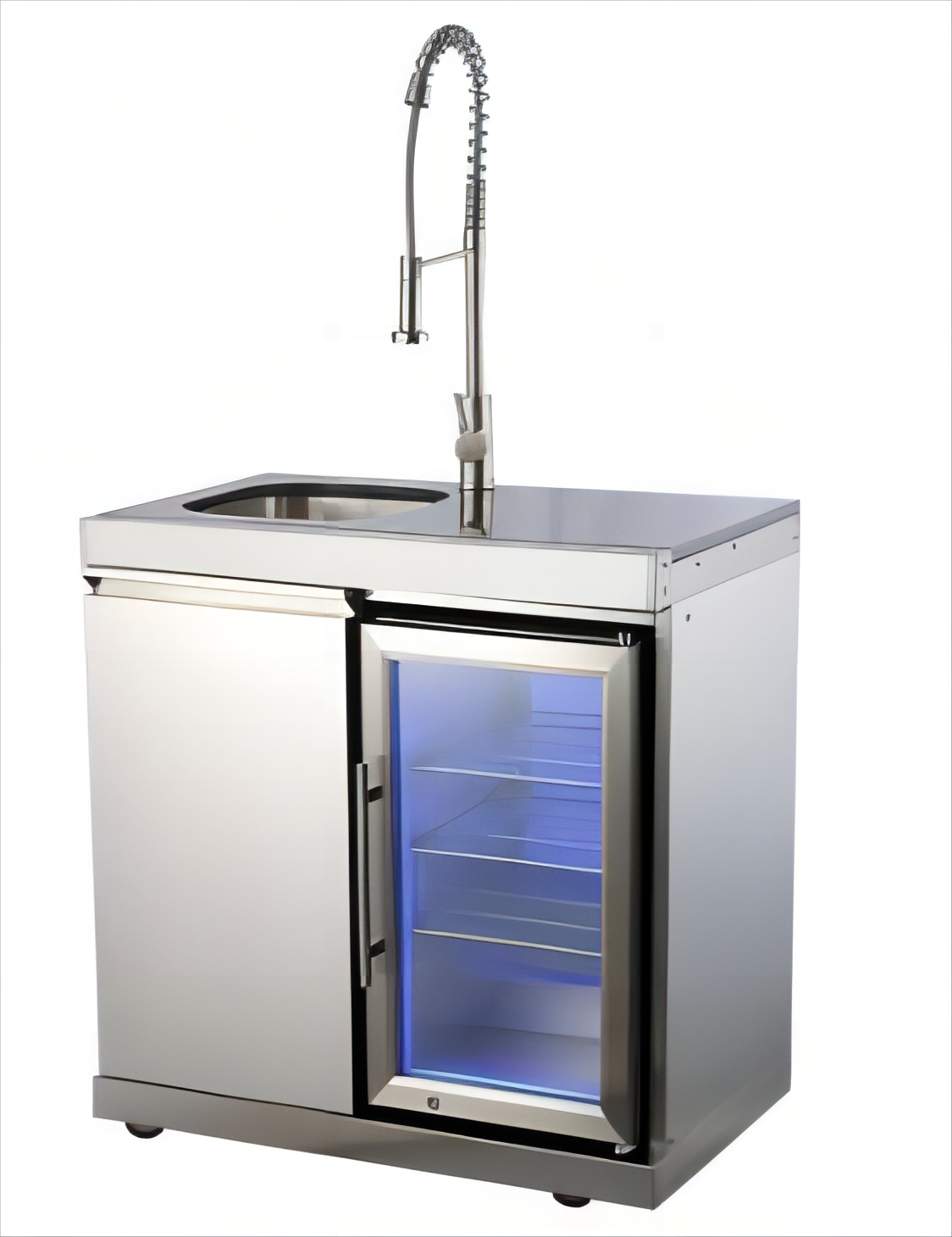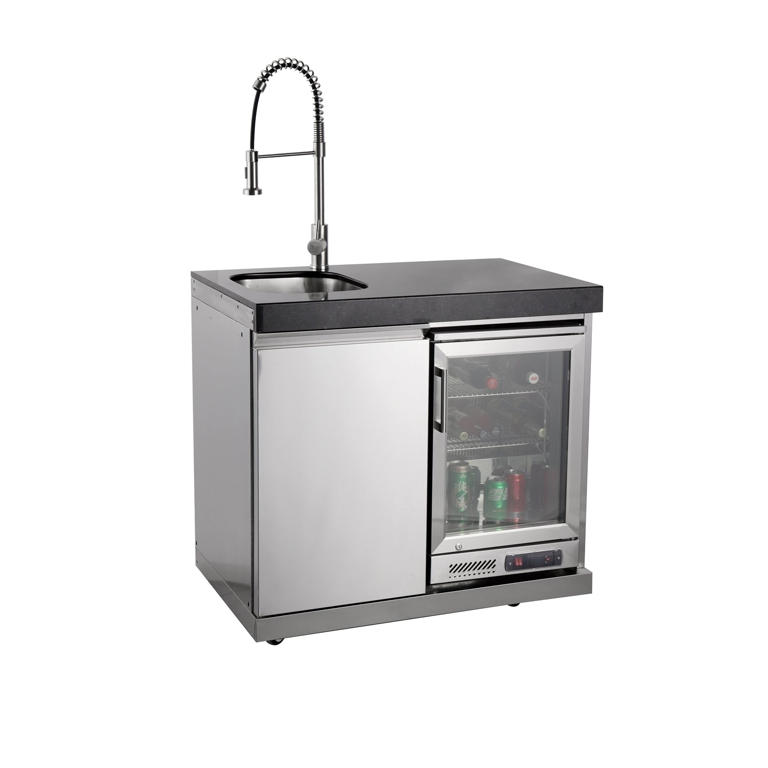 Kühlschrankschrank - 1-türiger Schrank (links) - 1-türiger Kühlschrank (rechts) + Wasserhahn und Spüle